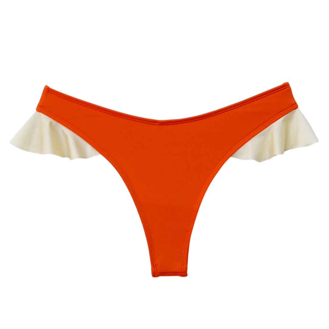 The new Sandy bottom features a high-rise hip placement that creates a visually lengthening silhouette. Strategic ruffle embellishments along the hip line provide a subtle feminine accent while enhancing the overall aesthetic profile. Please refer to the size guide & if you're in between sizes it is recommended to size up.
